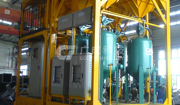設備采用雙缸體結(jié)構(gòu),由進氣閥、排氣閥、遙控磨料閥及控制系統(tǒng)、操作開關等組成