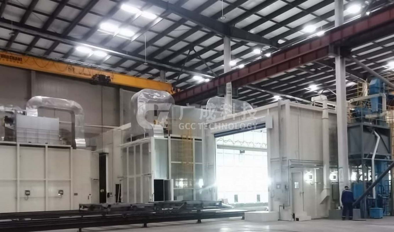 項目配套箱體表面手工打砂房、自動打砂房、打砂停留房、滾刷吹灰房及OK站
